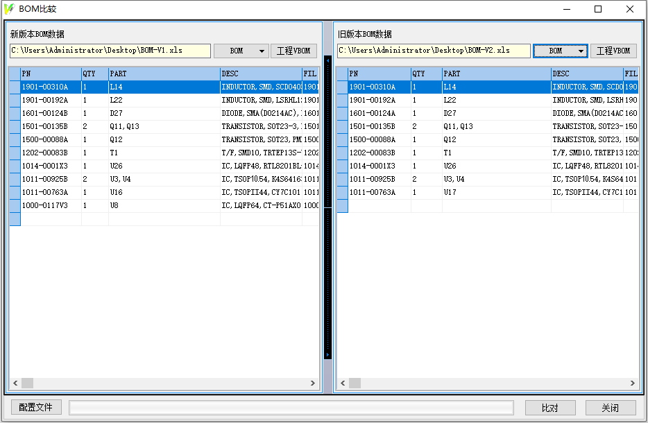 1.2:將兩份BOM數(shù)據(jù)導入,進行版本對比