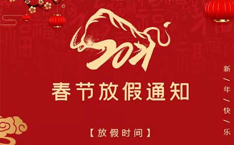 新春佳節即將到來,根據國家相關部門通知以及結合我司實際工作情況,放假時間為:2月9日-2月19日,20號正常上班,共計11天。放假期間客服電話暢通,如需協助請撥打 021-61182128。